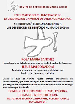 Reconocimiento 2009. comiteajusco30 noviembre 200930 noviembre 2009Eventos de promoción de los Derechos Humanos del CDHAjusco, Información sobre derechos humanos Navegación de entradas AnteriorSiguiente Comparte esto: Compartir en X (Se abre en una ventana nueva) X Comparte en Facebook (Se abre en una ventana nueva) Facebook Me gusta Cargando... Relacionado