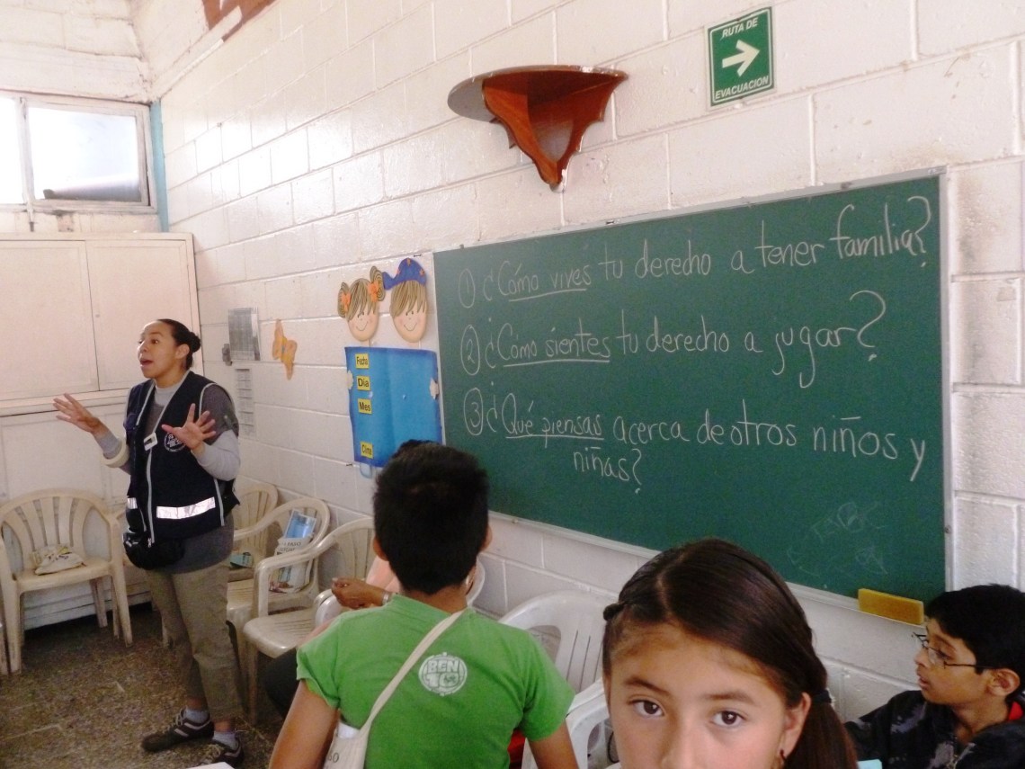 Actividad realizada por integrantes de la Dirección de Promoción territorial de la Comisión de Derechos Humanos del Distrito Federal, con niñas y niños de los Pedregales de Coyoacán DF. Colonia Ajusco, 5 de mayo de 2012.