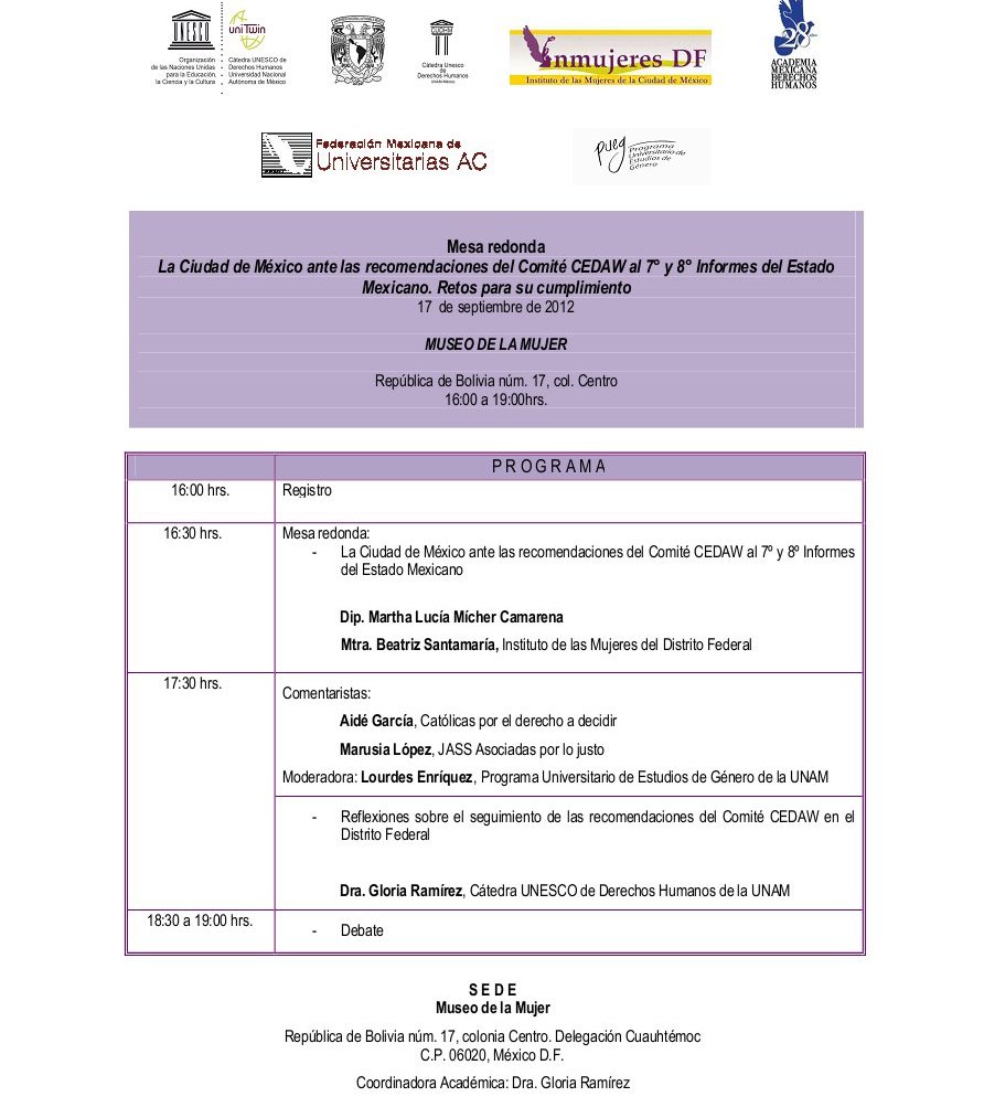 La ciudad de México ante las recomendaciones del Comité para la eliminación de la discriminación contra la mujer (CEDAW) comiteajusco15 septiembre 201216 septiembre 2012Acciones o eventos de otras organizaciones Navegación de entradas AnteriorSiguiente Comparte esto: Compartir en X (Se abre en una ventana nueva) X Comparte en Facebook (Se abre en una ventana nueva) Facebook Me gusta Cargando... Relacionado