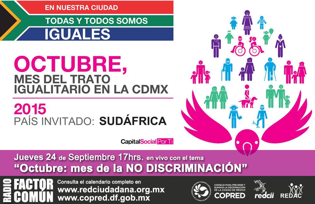 «Octubre: Mes del Trato Igualitario en la CDMX». comiteajusco21 septiembre 2015COPRED, no discriminación Navegación de entradas AnteriorSiguiente Comparte esto: Compartir en X (Se abre en una ventana nueva) X Comparte en Facebook (Se abre en una ventana nueva) Facebook Me gusta Cargando... Relacionado