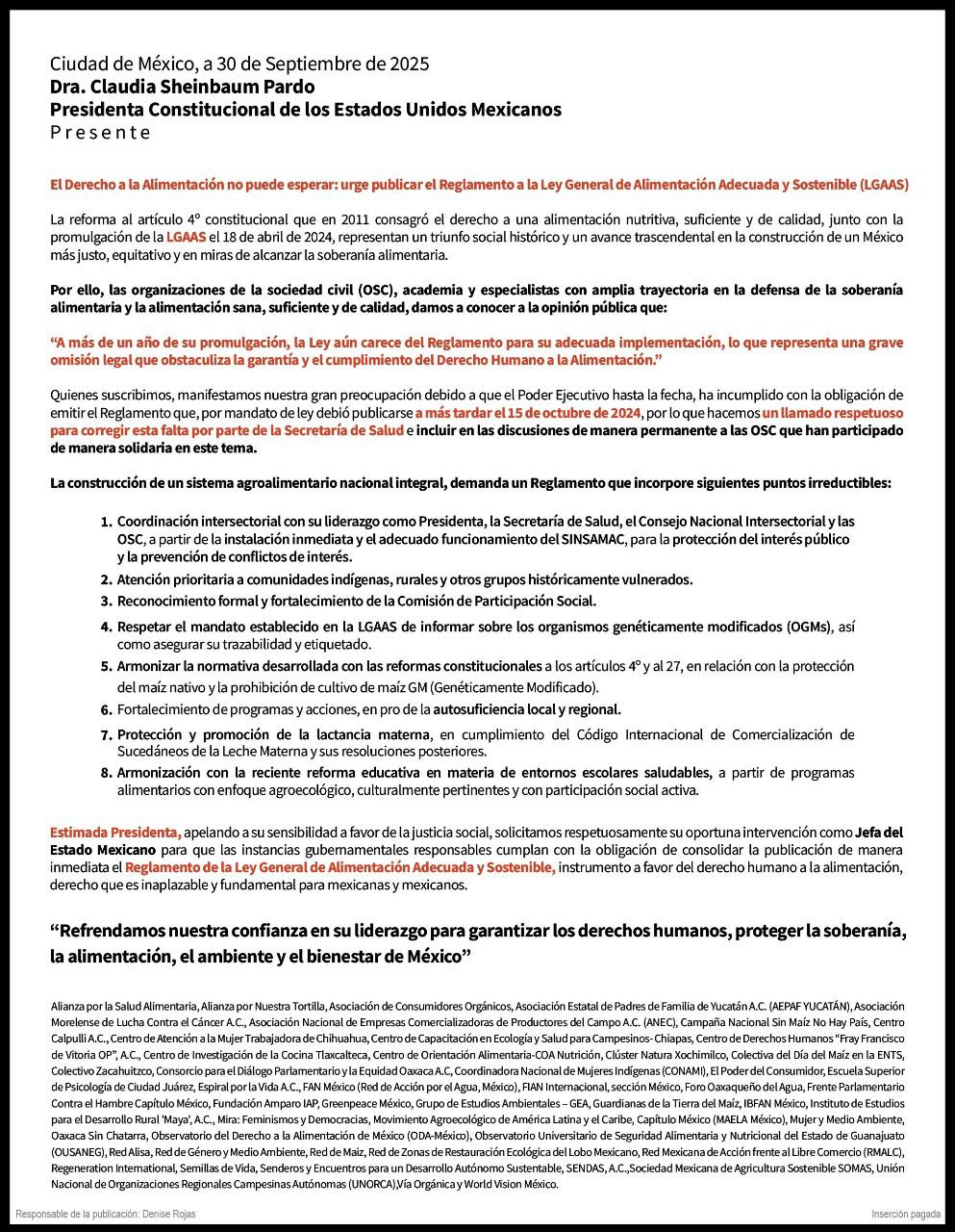 El Derecho a la Alimentación no puede esperar: urge publicar el Reglamento a la Ley General de Alimentación Adecuada y Sostenible. comiteajusco1 octubre 20251 octubre 2025Historia del Comité Ajusco Navegación de entradas AnteriorSiguiente Comparte esto: Compartir en X (Se abre en una ventana nueva) X Comparte en Facebook (Se abre en una ventana nueva) Facebook Me gusta Cargando... Relacionado