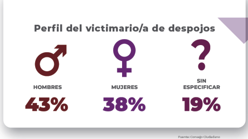 En su reporte, el Consejo Ciudadano explicó a El Economista que comparado con otras formas de violencia, el despojo patrimonial tiene un efecto devastador porque desarraiga.